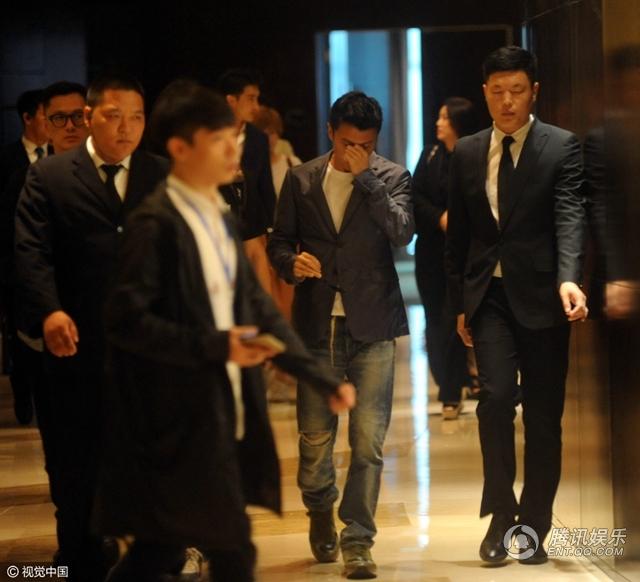 谢霆锋一路保镖护驾。