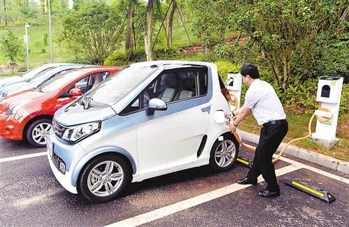5月9日,璧山城区内一公共停车场,市民为新能源汽车充电。以众泰新能源汽车制造基地落户为契机,璧山在城区公共停车场布局新能源充电系统,加快新能源汽车推广,倡导绿色低碳出行。据了解,这是璧山区建成的首个公共停车场新能源汽车充电系统,有2座快速充电桩,半小时可为一辆电动汽车充电20度,为充电总量80%左右,可正常行驶160公里;系统还有6座慢速充电桩,8个小时时间可为一辆电动汽车充满电,可正常行驶200公里。该充电系统采用手机APP扫描二维码付费,1度电费用为1.22元,驾驶员还可通过APP监控并停止充电过程。